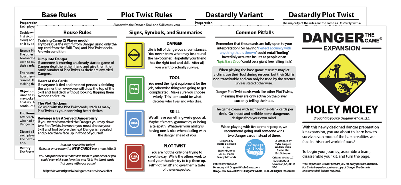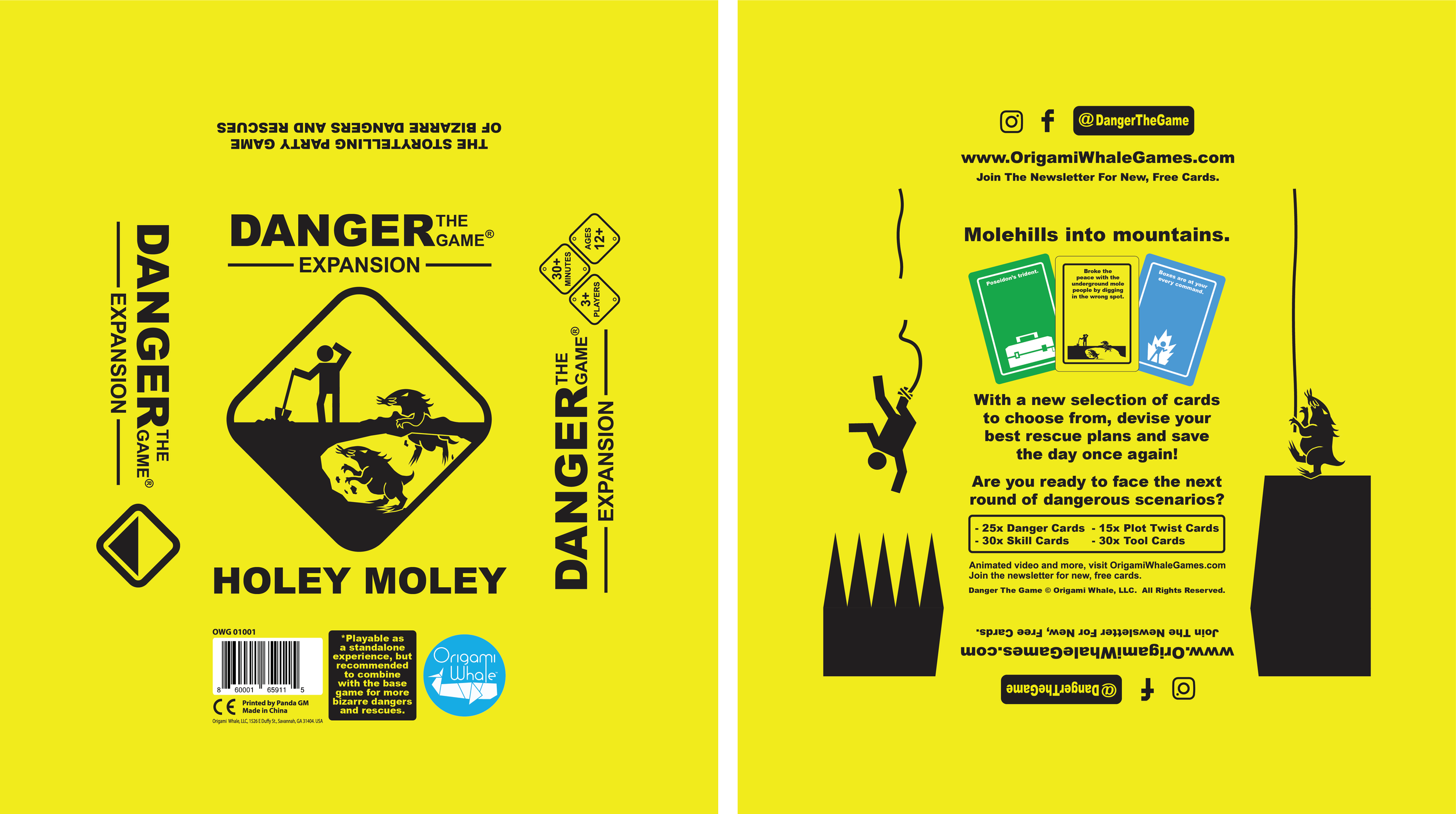 First print edition of the Whack A Moley Expansion, featuring an Origami Whale I designed to be included in every release by Origami Whale Games. Its design changes to match the game it is included with.