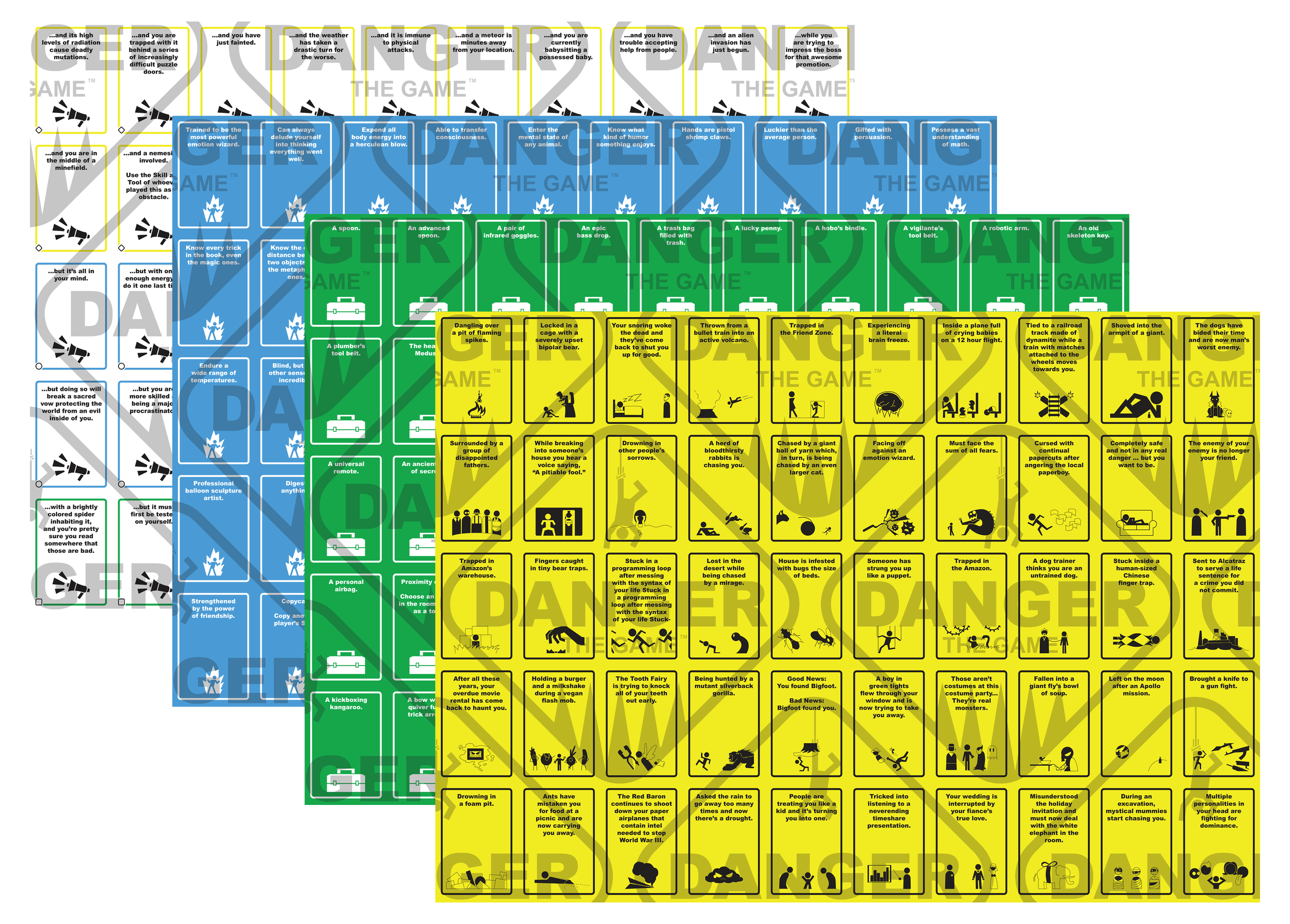 A selection of cards from the first edition of Danger The Game. Click for a PDF version.