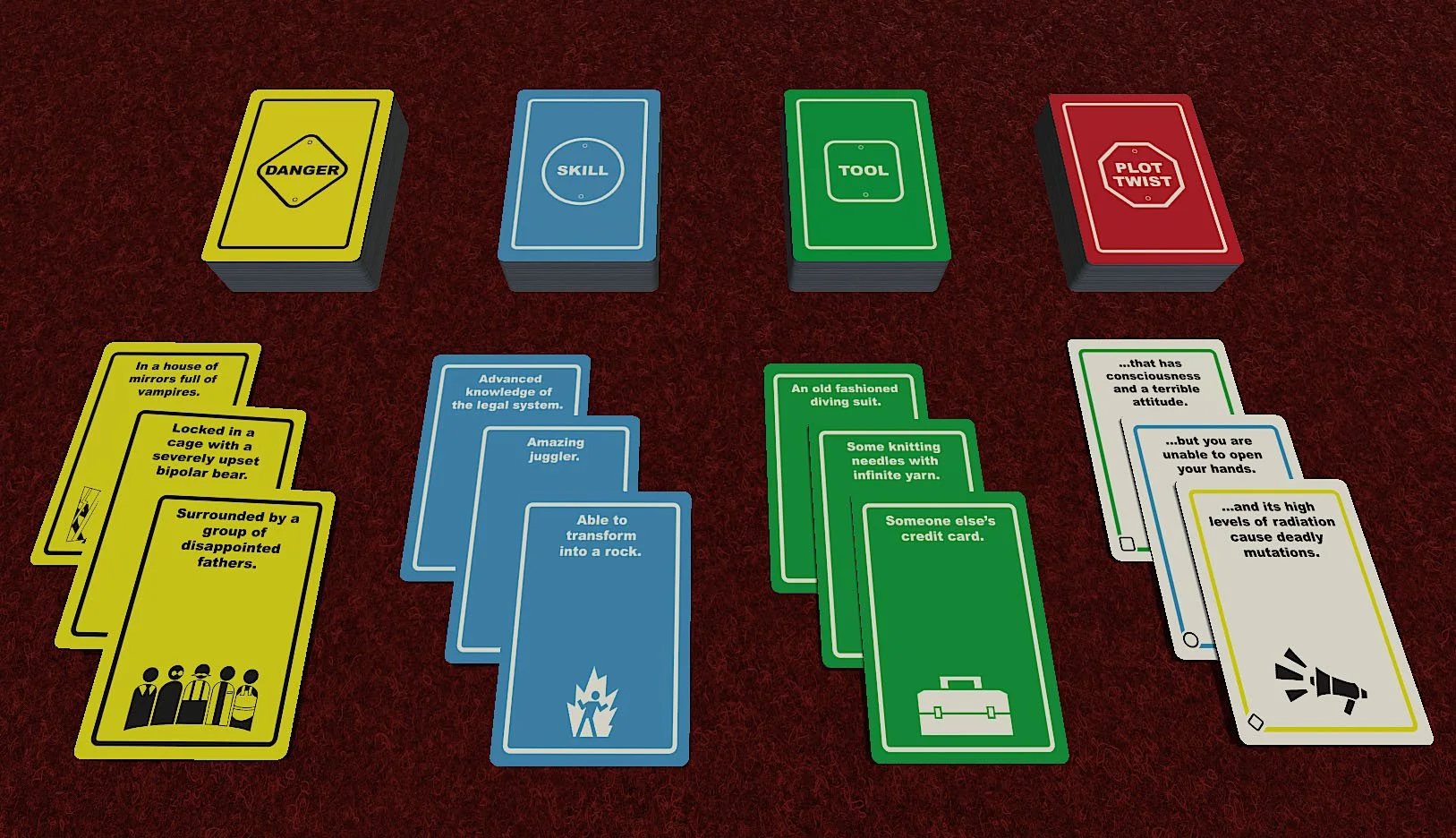 Danger The Game came about in late 2015, quickly evolving into a story telling party game where players are tasked with using their skills and tools to rescue victims from bizarre and dangerous scenarios.